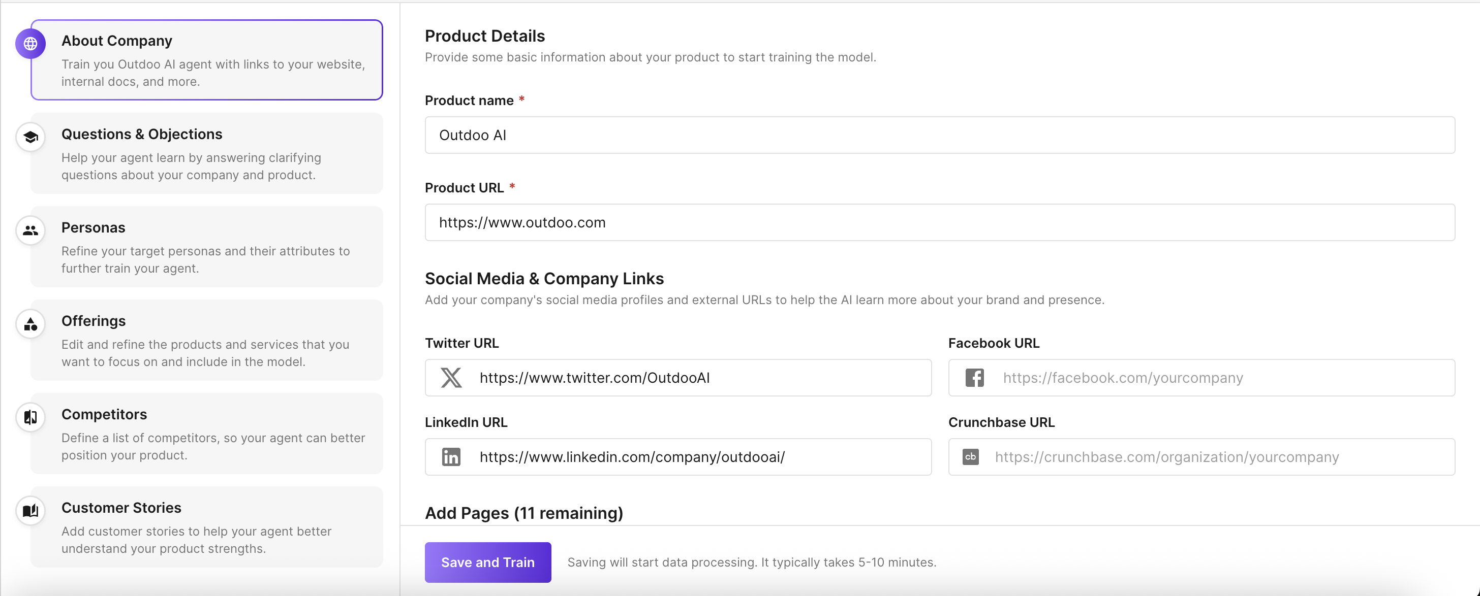 With this functionality, teams can build intelligent, context-aware models that understand your company, its products, target personas, and competitive landscape.