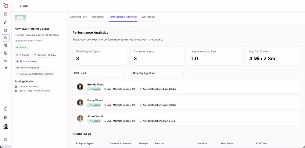 Sequence the roleplay agents in the course to match when a rep will actually encounter each scenario. If reps do not start taking discovery calls until week two, the discovery roleplay should unlock in week two — not be available day one alongside everything else. Learners complete what feels relevant right now, not what is theoretically relevant later.