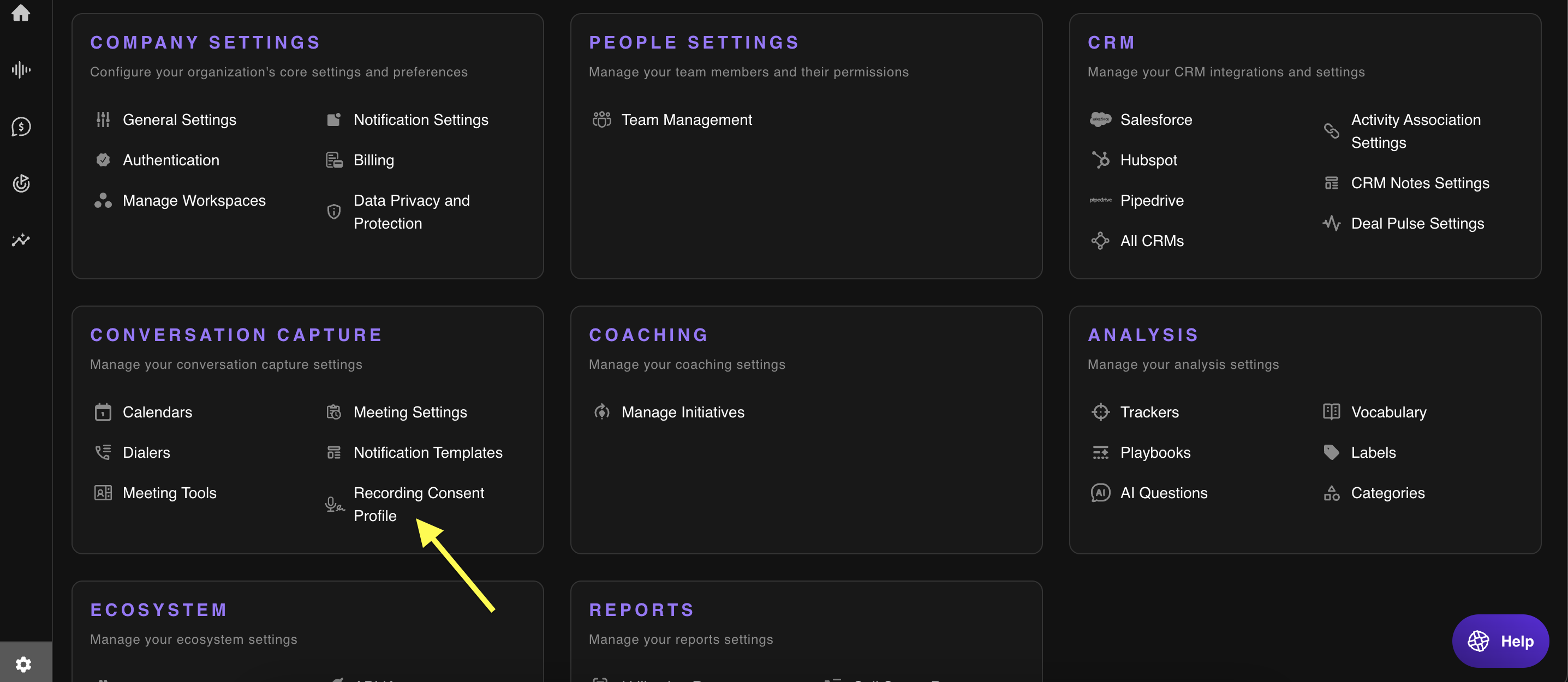 - Click on Conversation Capture to manage recording settings.