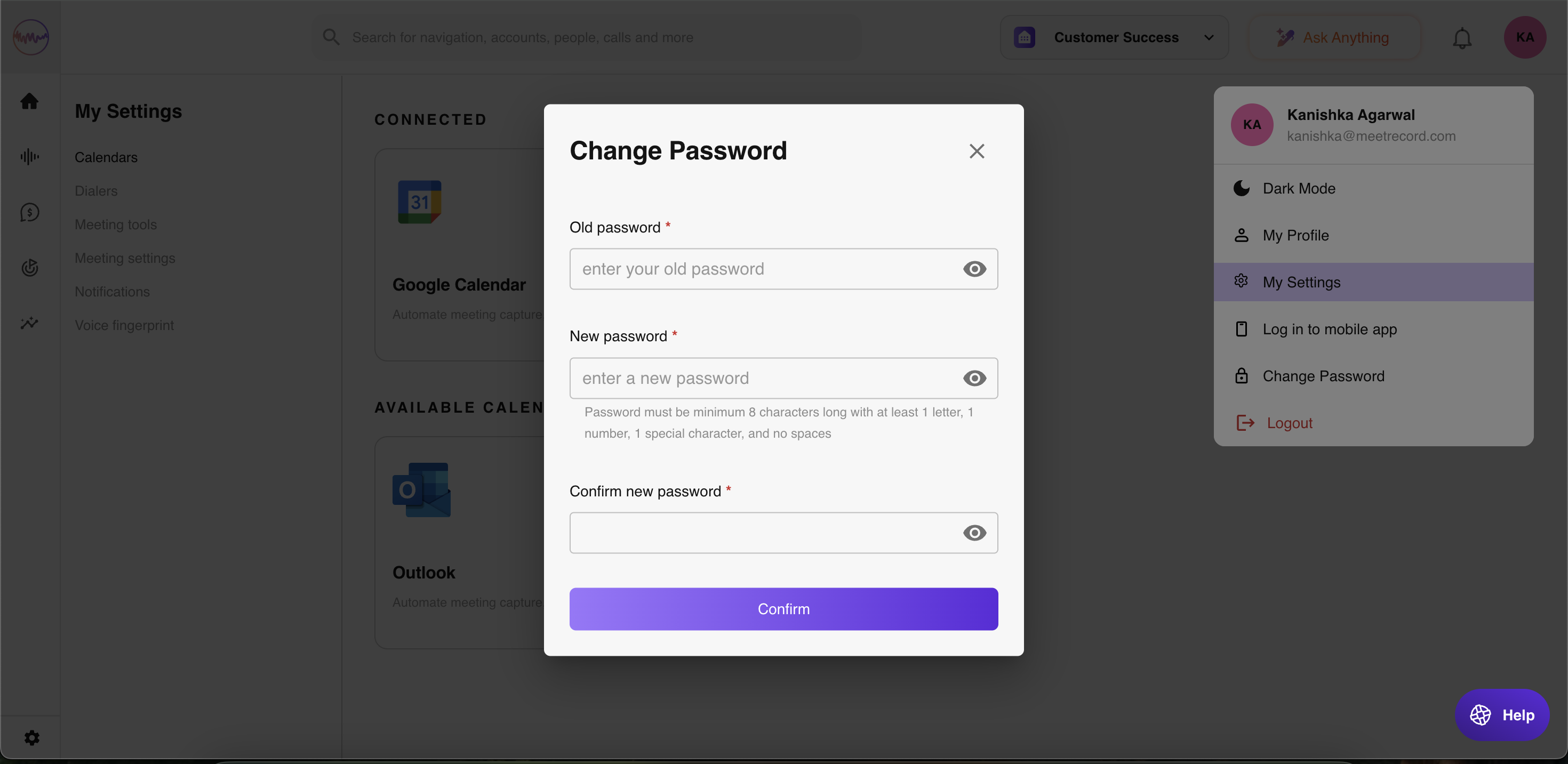 - Click your username and select Change Password.