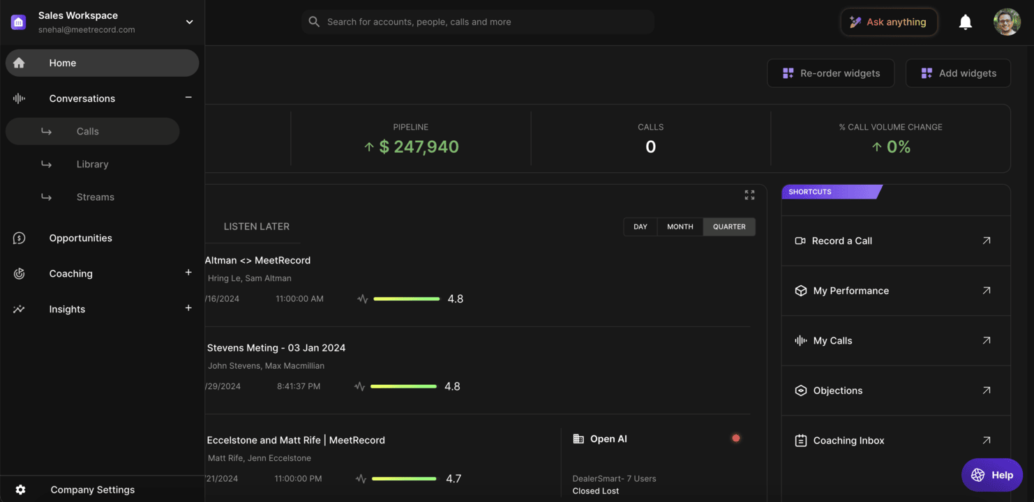 Streams in Outdoo AI enable you to automatically collect and organize calls that are important to you and your team. You can define call types using filters, set up Slack or email notifications, and share streams with team members to ensure everyone stays updated on key conversations.