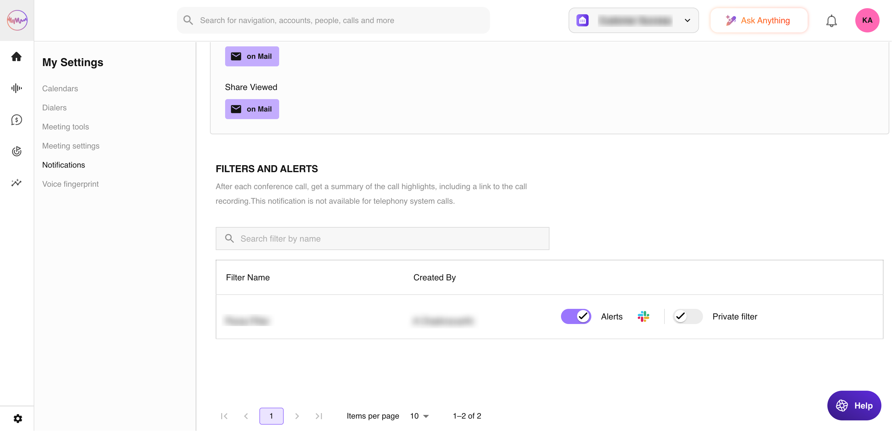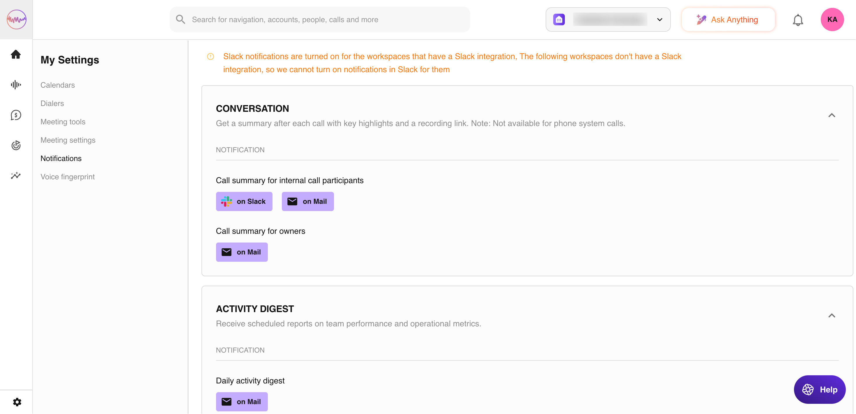 There are two channels available for configuring notifications: Email and Slack. For each notification, you can decide if and how you wish to be notified. If all checkboxes are unchecked, the toggle will automatically turn off, while selecting one will turn the toggle back on.