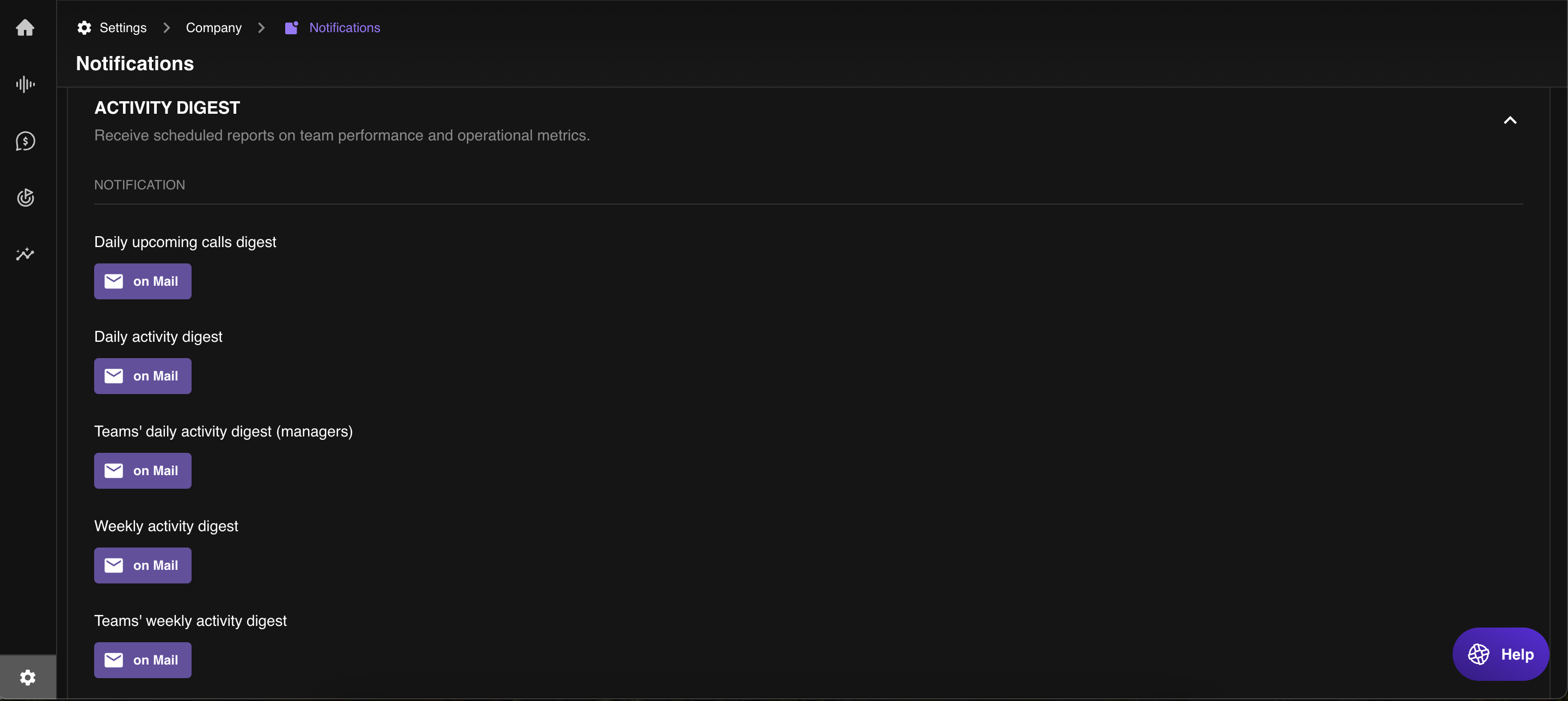 - Select the desired digest type (Daily/Weekly, Individual/Manager).