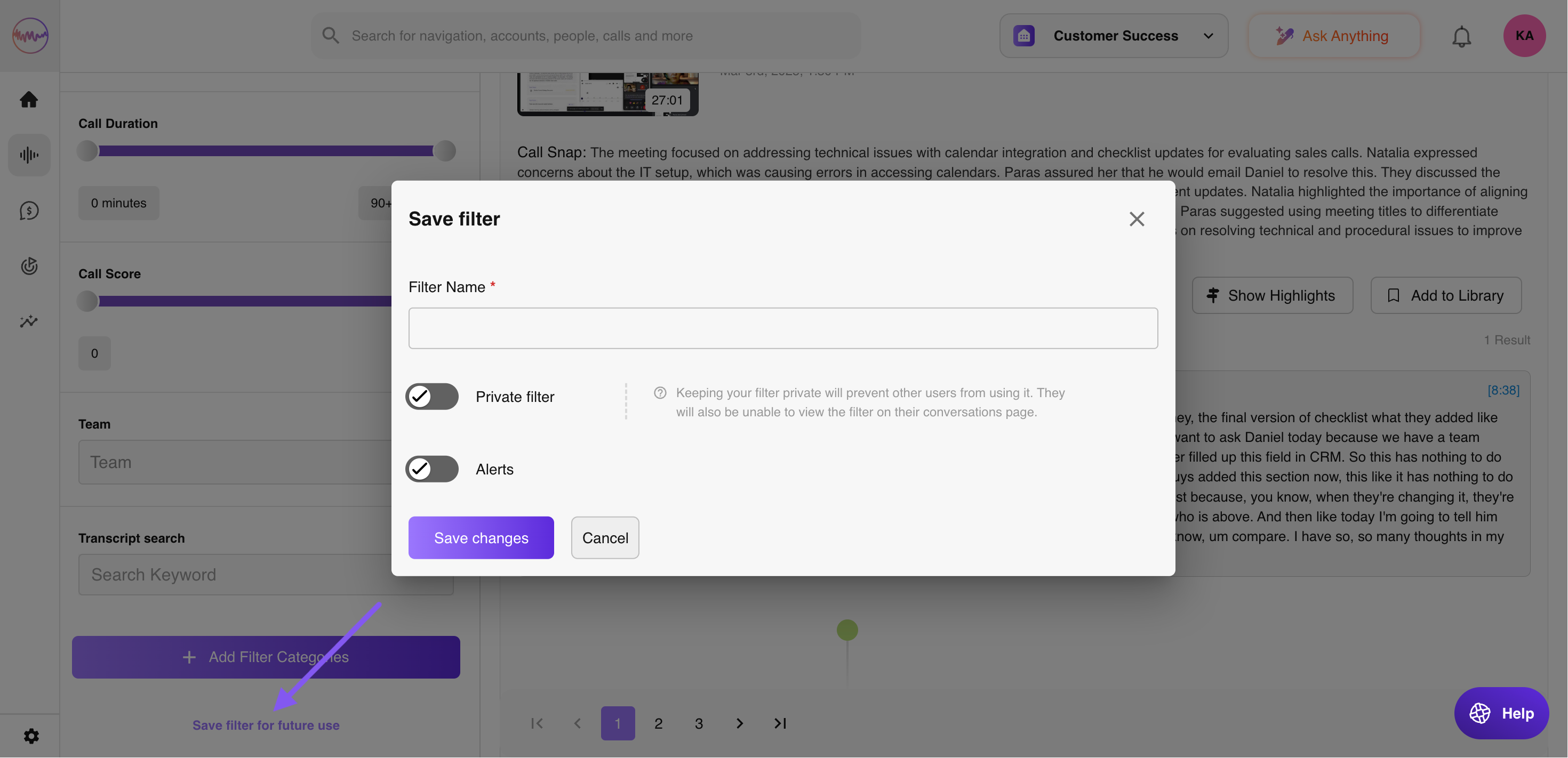 By utilizing filters and saving them for future use, you can enhance your call management process, making it more efficient and tailored to your specific needs: