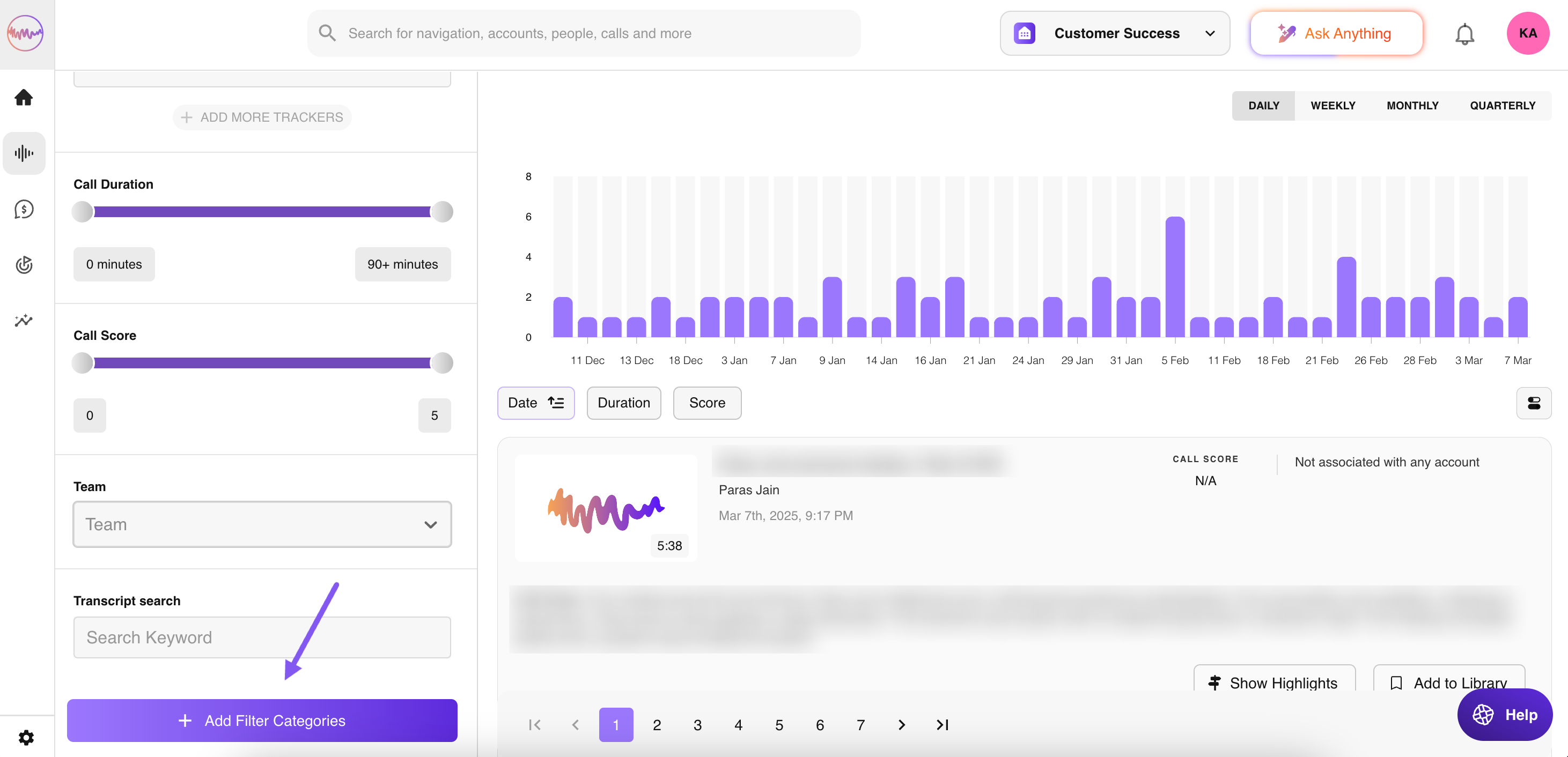Managing and analyzing calls effectively is crucial for optimizing sales and customer success efforts. With Outdoo AI, you can leverage powerful filtering options to customize your call list, making it easier to focus on the most relevant interactions.