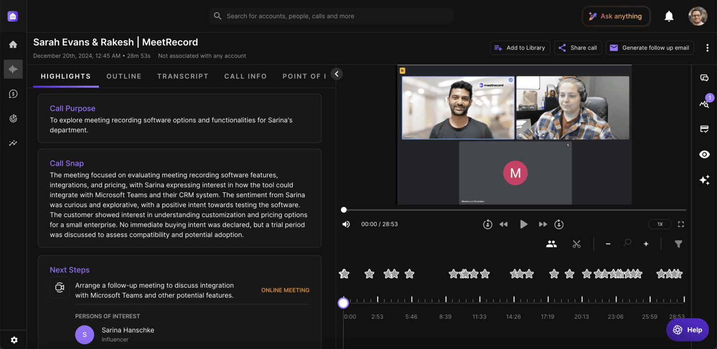 - Share Call: Share the call with customers, colleagues, or embed it elsewhere.
