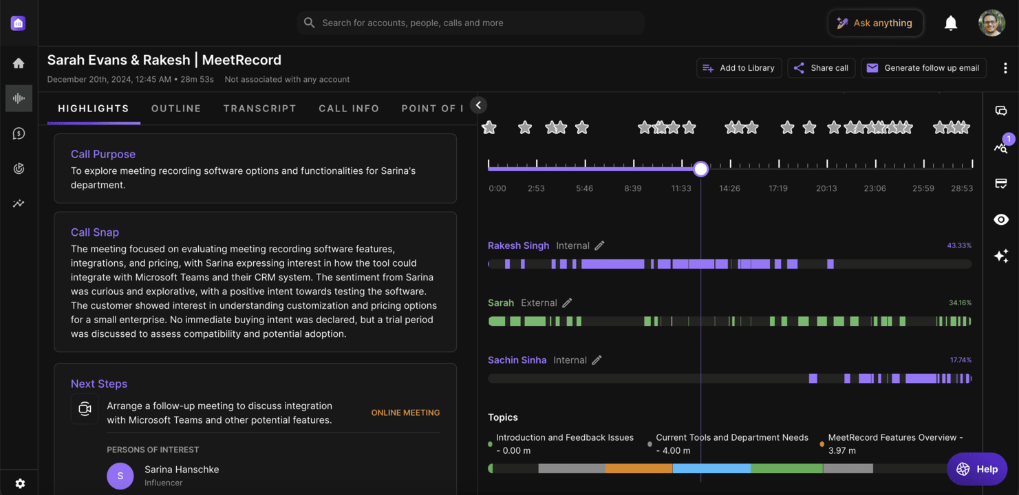 - View when screens were shared and which topics were discussed.
