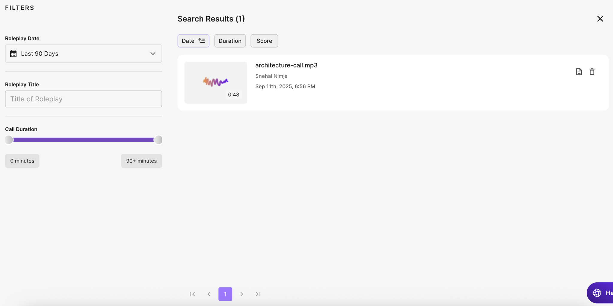 - Roleplay Date: Filter calls by date range (e.g., last 30 days, last 90 days, or custom).