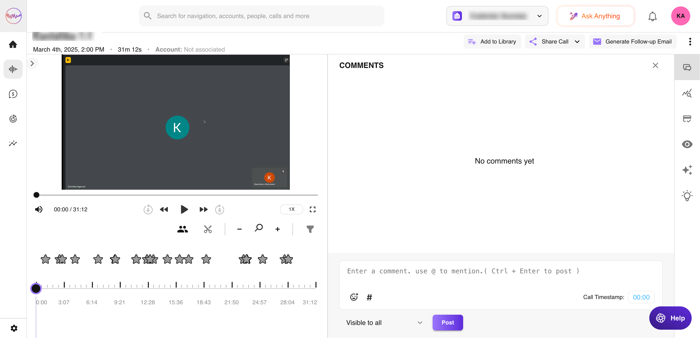In the call comments section, you can @mention your team to give feedback or to bring in others to help. You can even make comments private or add hashtags to search for them later!