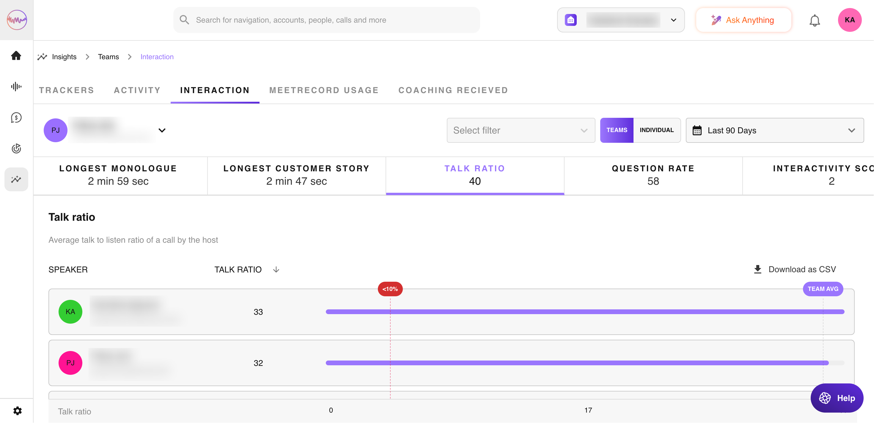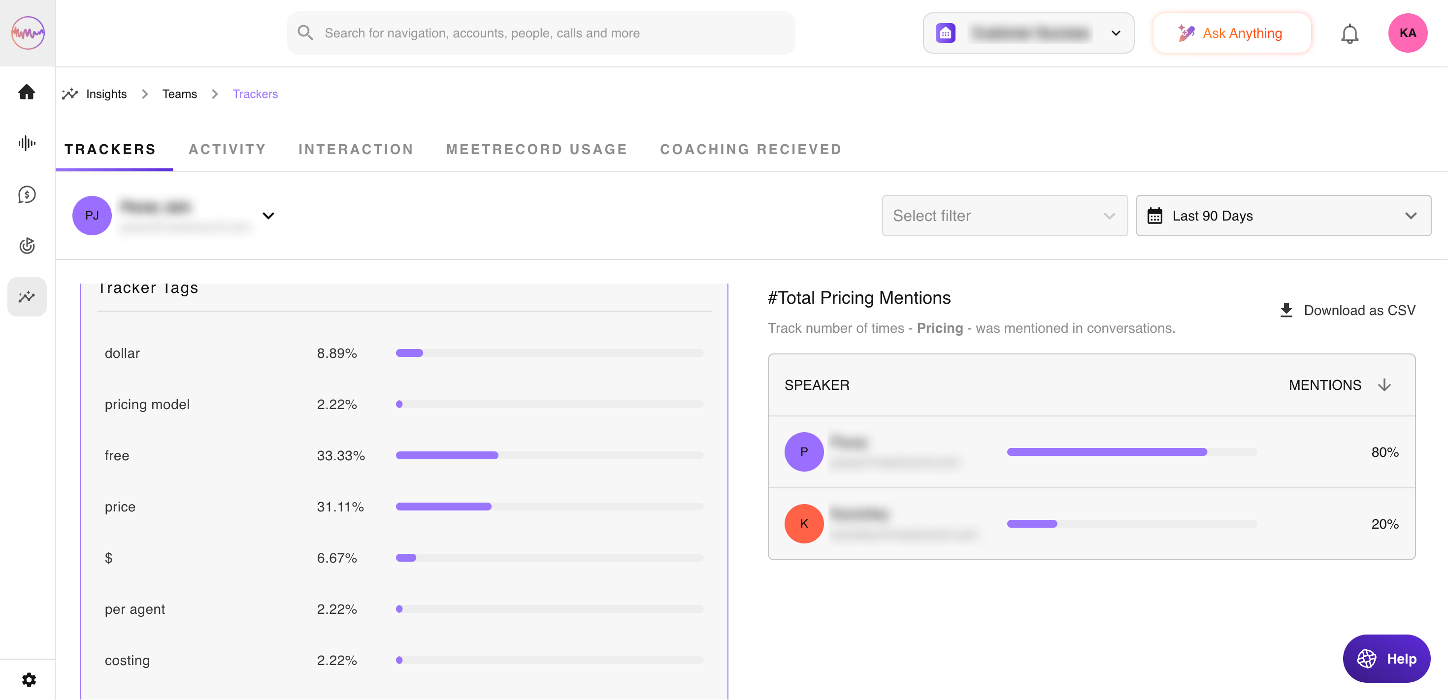 What talk time does your best rep adhere to? Or when do your bottom reps talk about pricing? All of these questions and more can be answered via the Insights page.