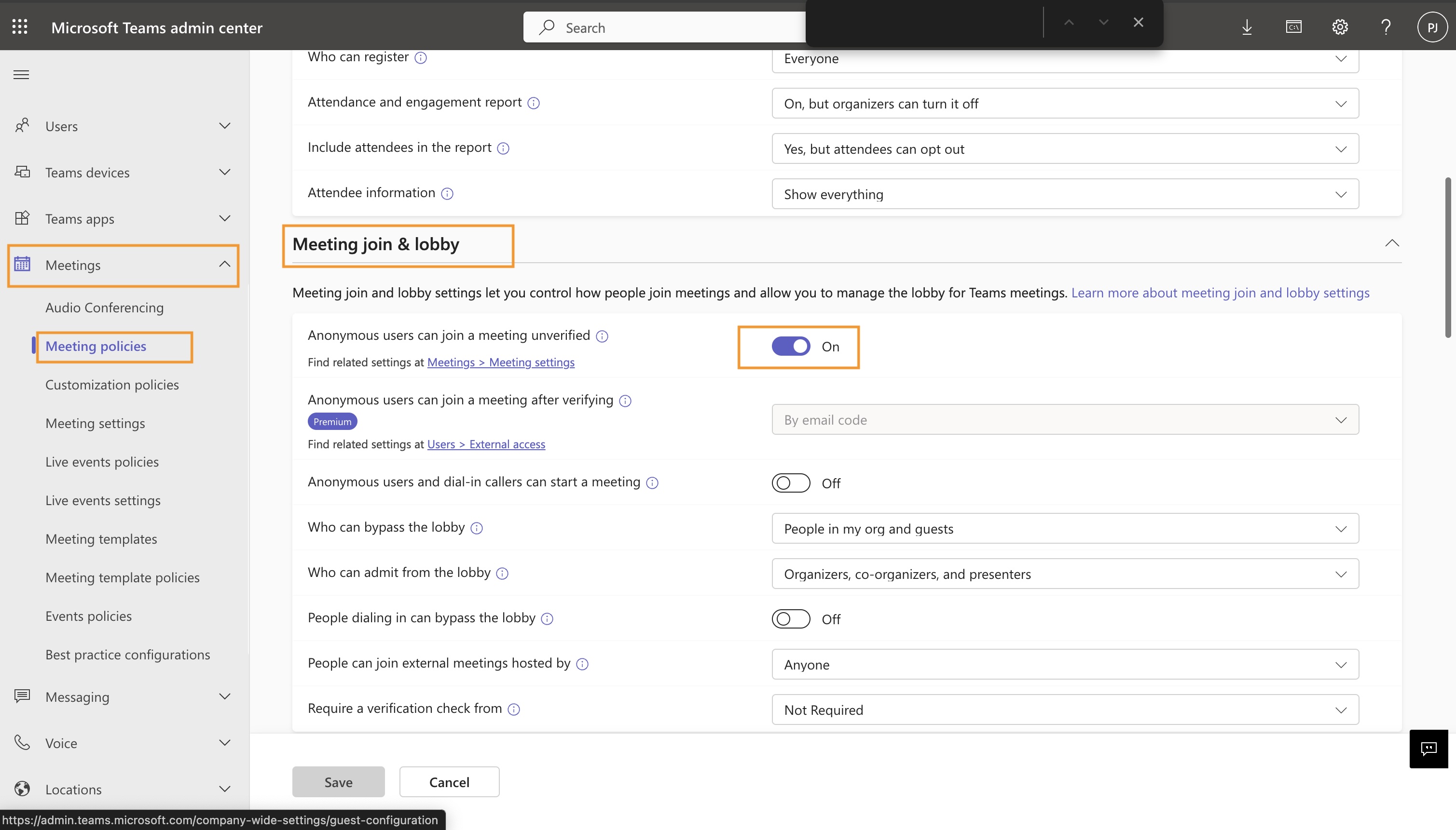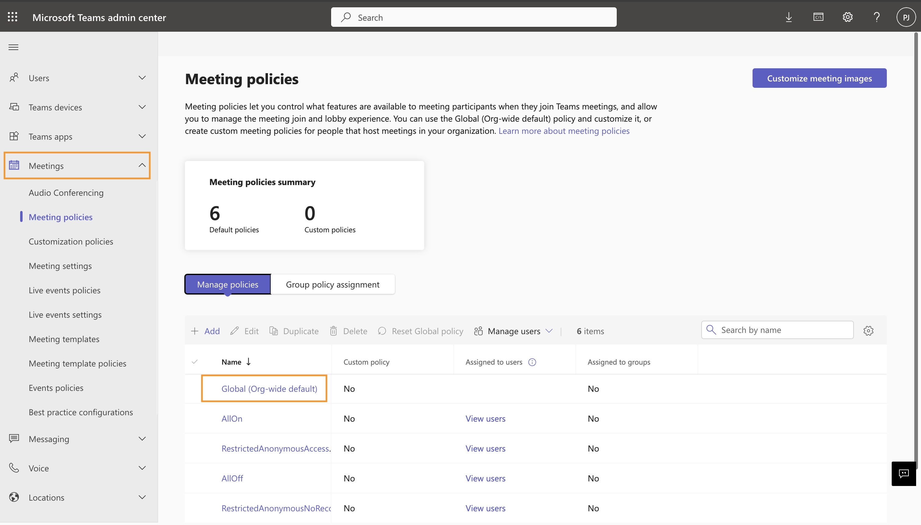 a) Change Default Meeting Policies in Teams Admin Center (For Org-Wide Changes)