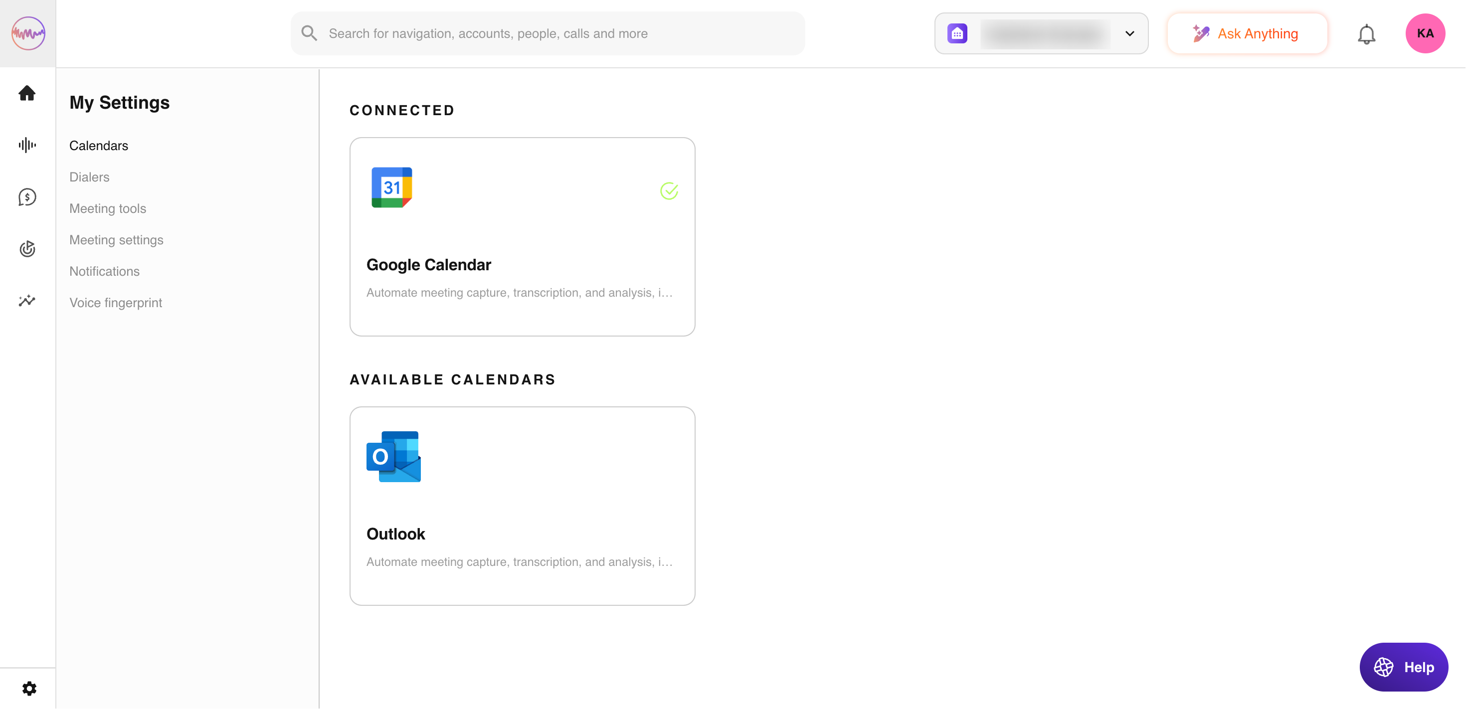 Calendars: Shows whether your calendar is integrated and the events are being imported into Outdoo AI.