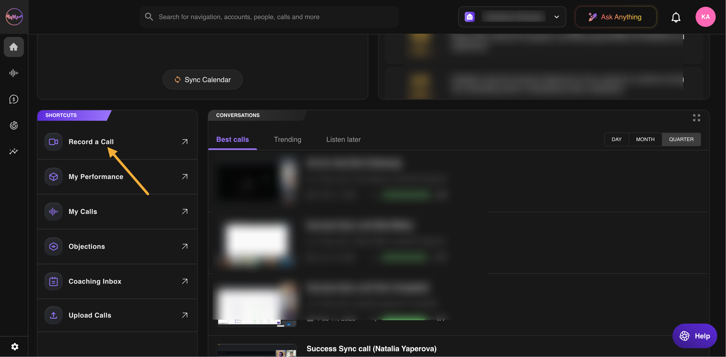 - Choose the "Record a call" option to manually start the recording for your meeting.