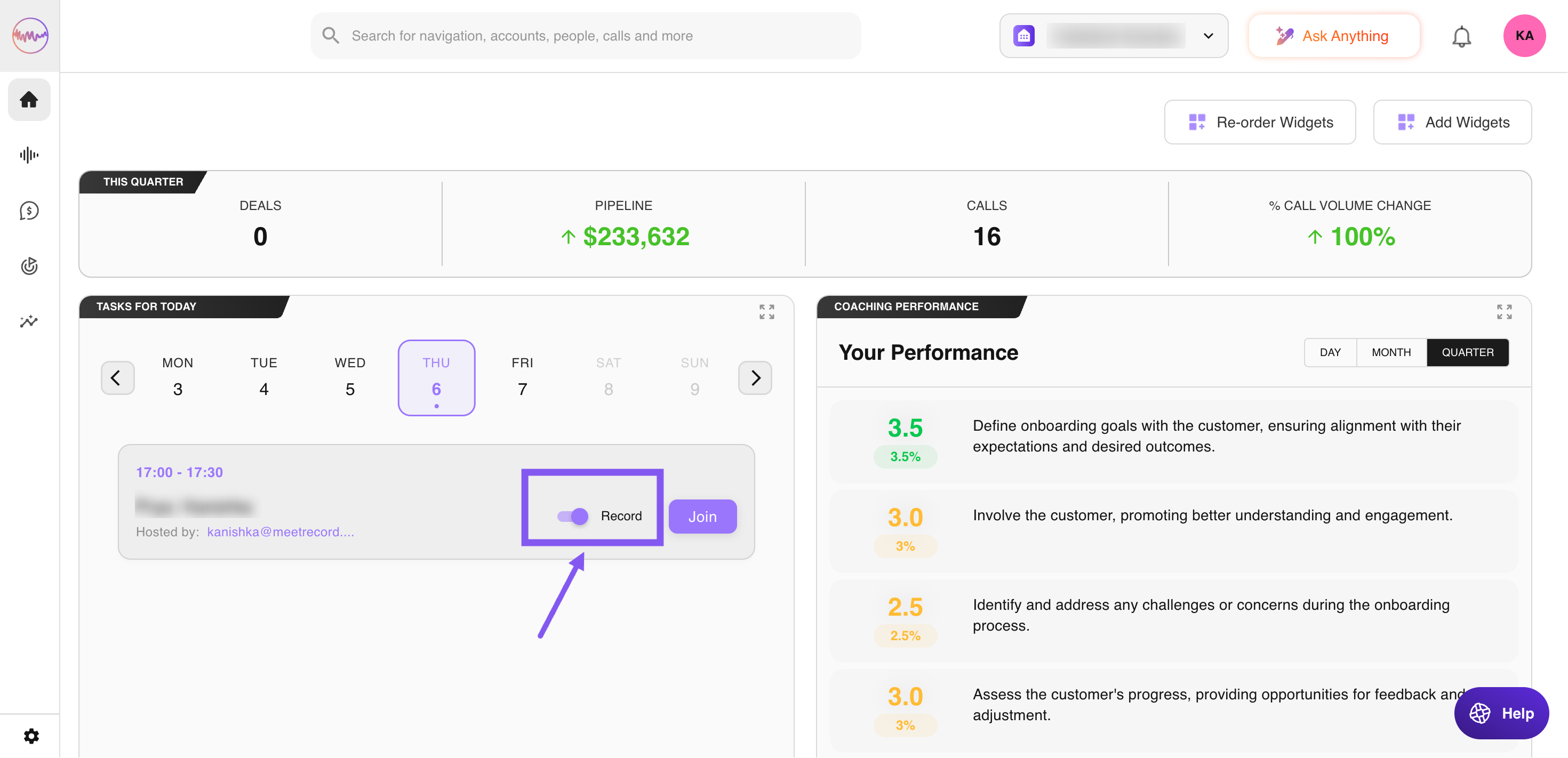 - Go to the Upcoming Calls section on the homepage or the Activity Calendar to view scheduled recordings.
