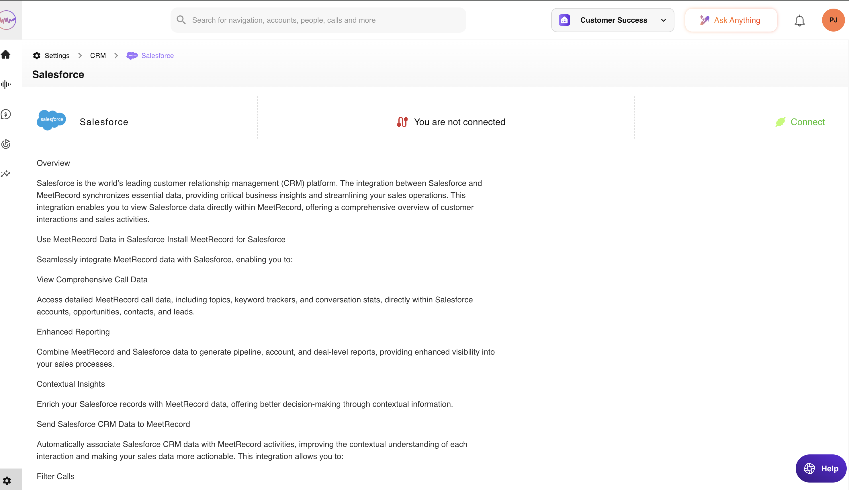 By connecting your Salesforce account, you can seamlessly sync meeting data and get deeper visibility into your customer conversations—right within Salesforce.