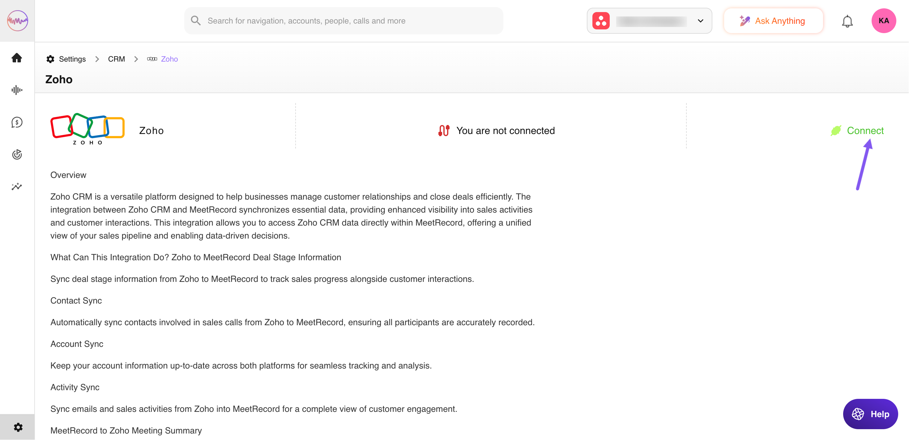 Integrating Zoho CRM with Outdoo AI enhances your team's workflow by enabling seamless syncing of meeting data and CRM insights. Follow these simple steps to integrate Zoho CRM with MeetRecord.