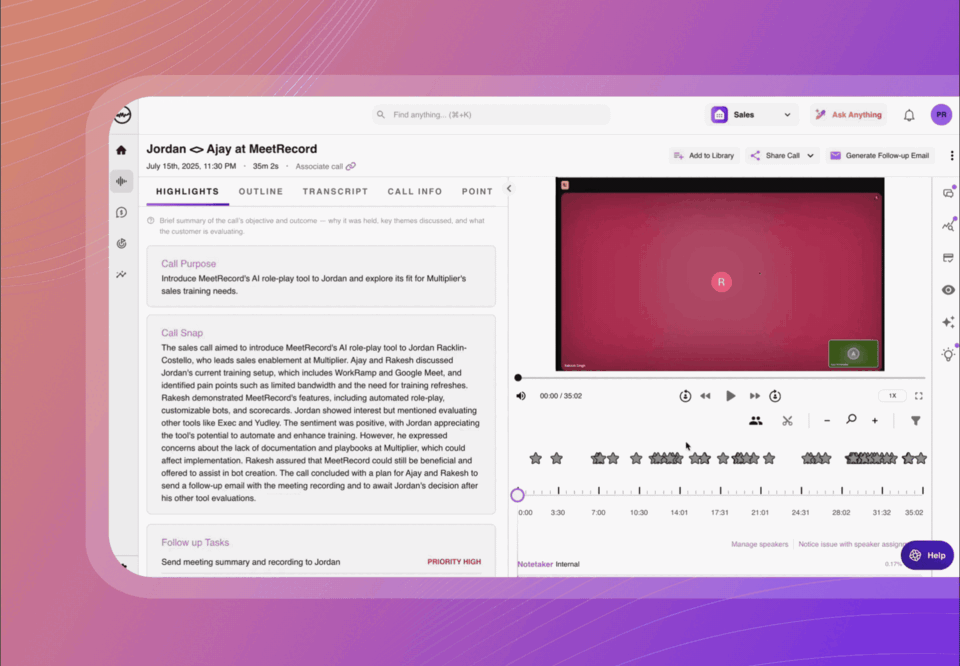 AI Sales Roleplay bridges the gap between theory and execution, giving every rep the power to show up sharp, sound confident, and sell smarter.